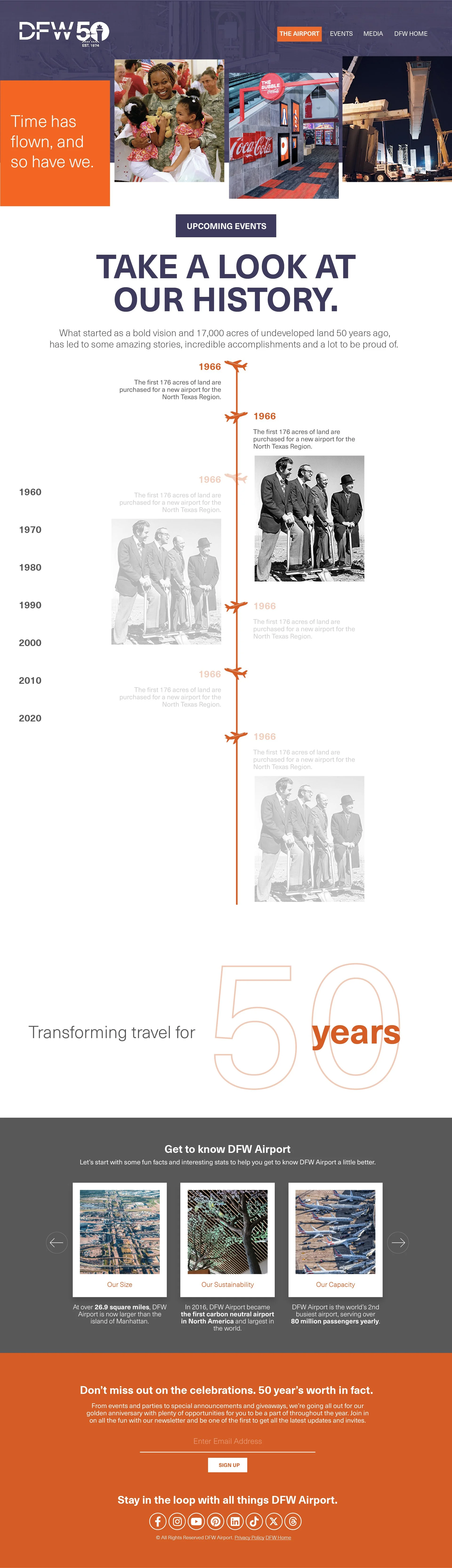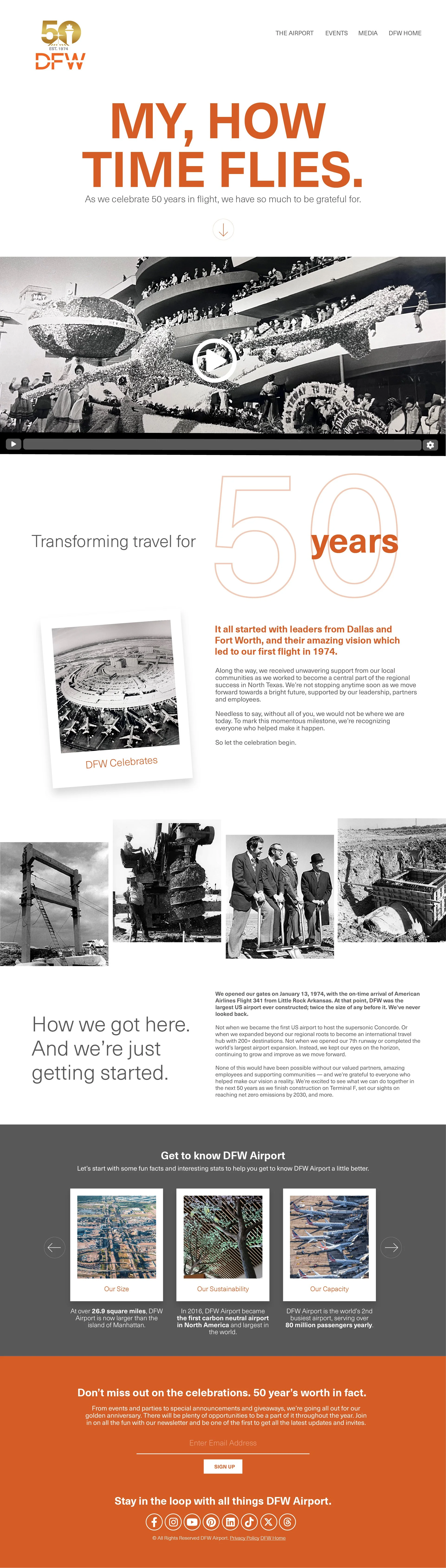 A microsite to show the historic impact of DFW through photography, news, events and other media.